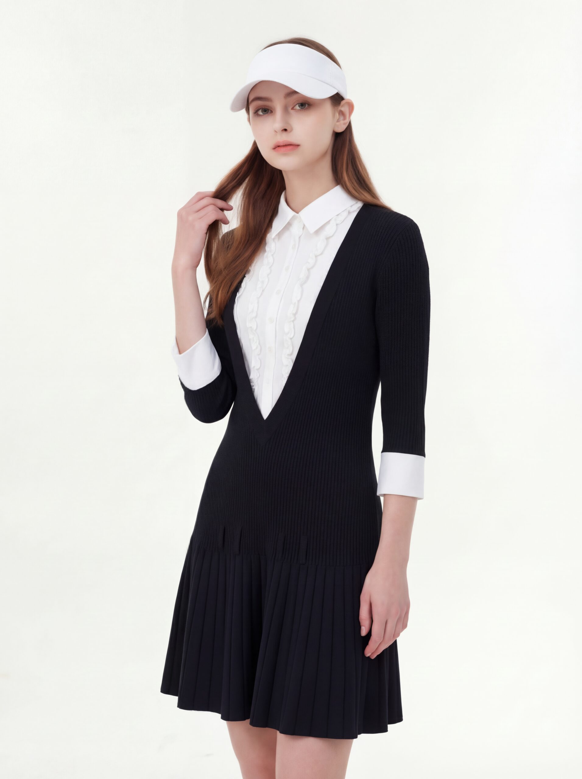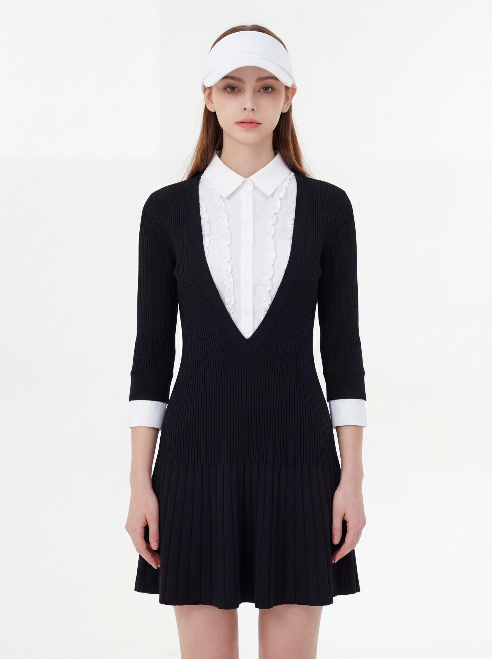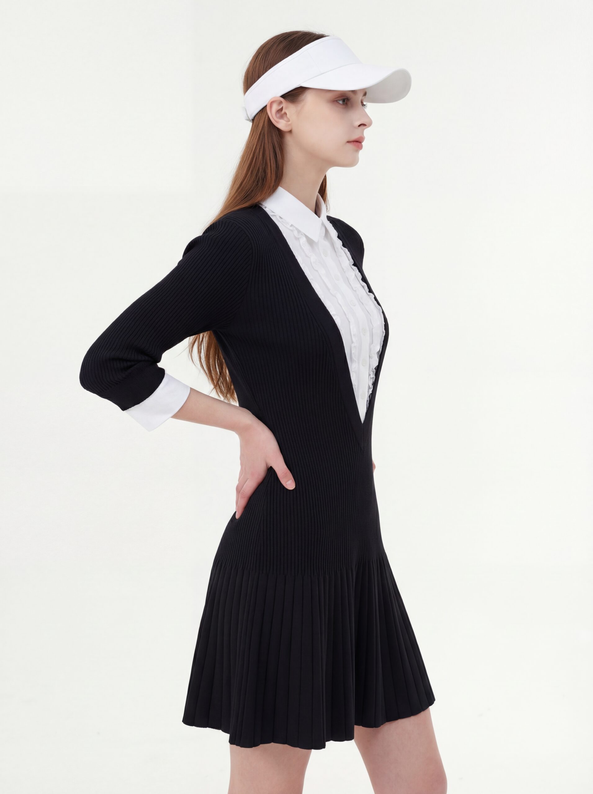 エレガント バイカラー ニットワンピース
