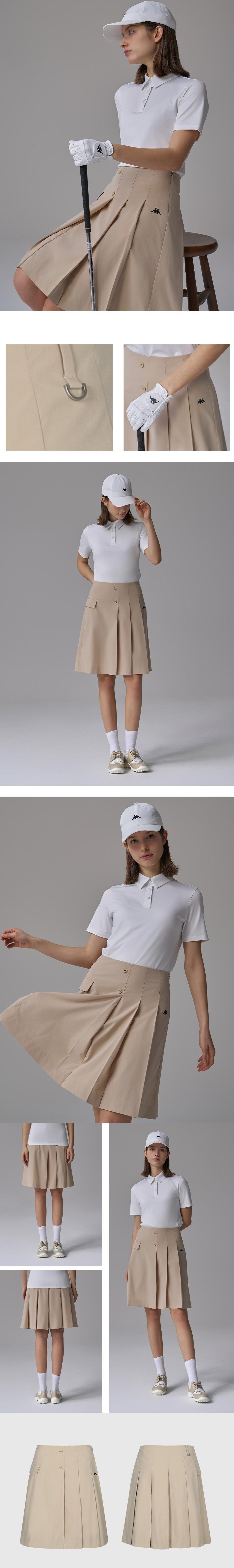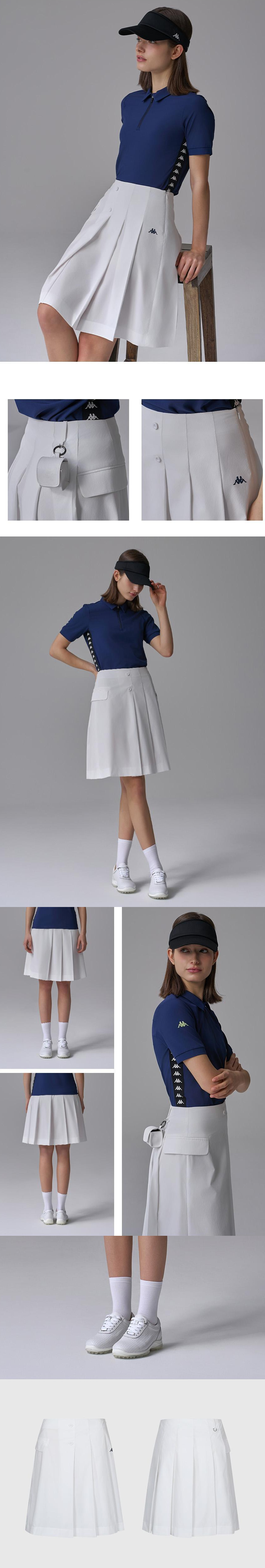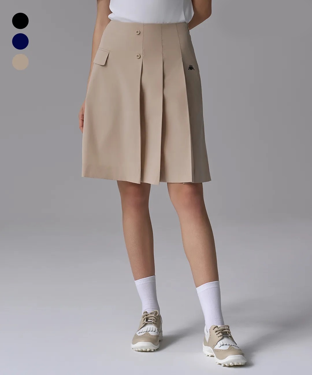 ・フロントはラップスカートのような洗練された見え方で、サイドのロゴディテールがさりげないアクセントに