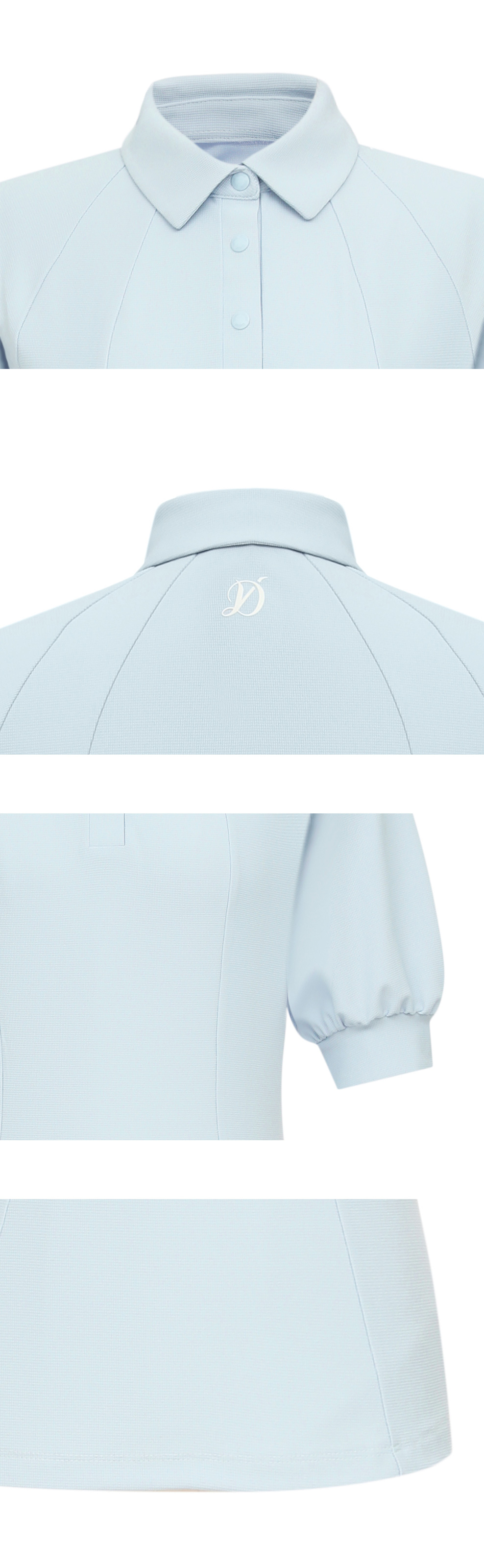 ・女性らしいパフスリーブと、顔まわりをすっきり見せるYカラーが魅力のスリムトップス