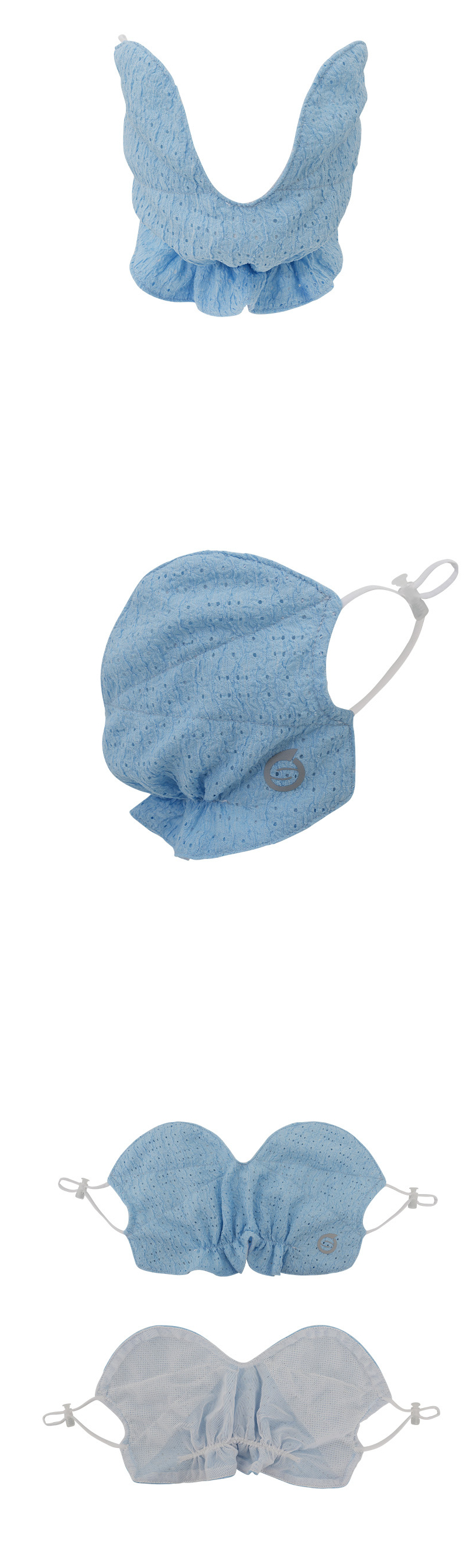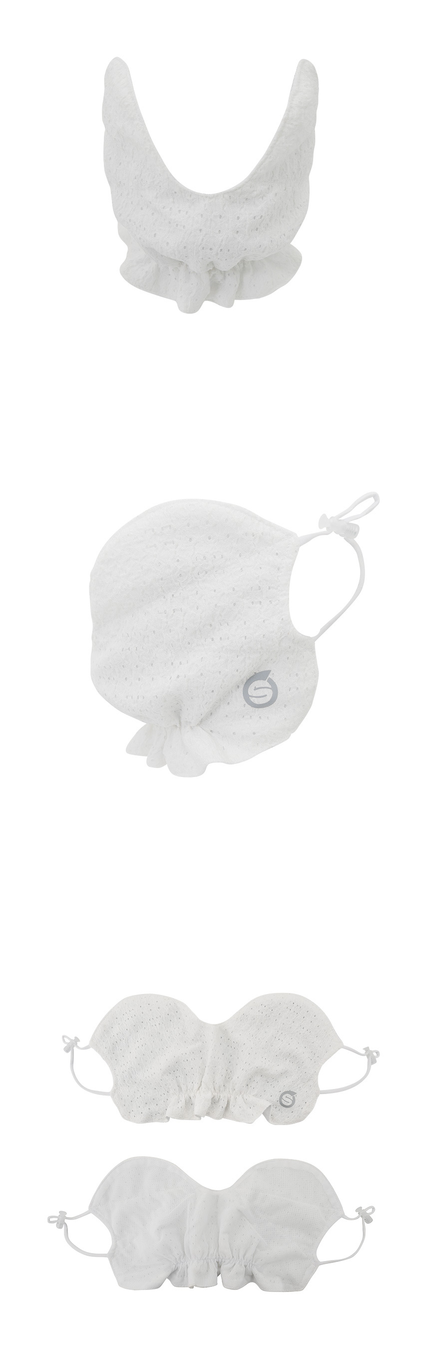 ・耳掛けタイプなので着脱しやすく、顔まわりから首元までしっかりカバー
